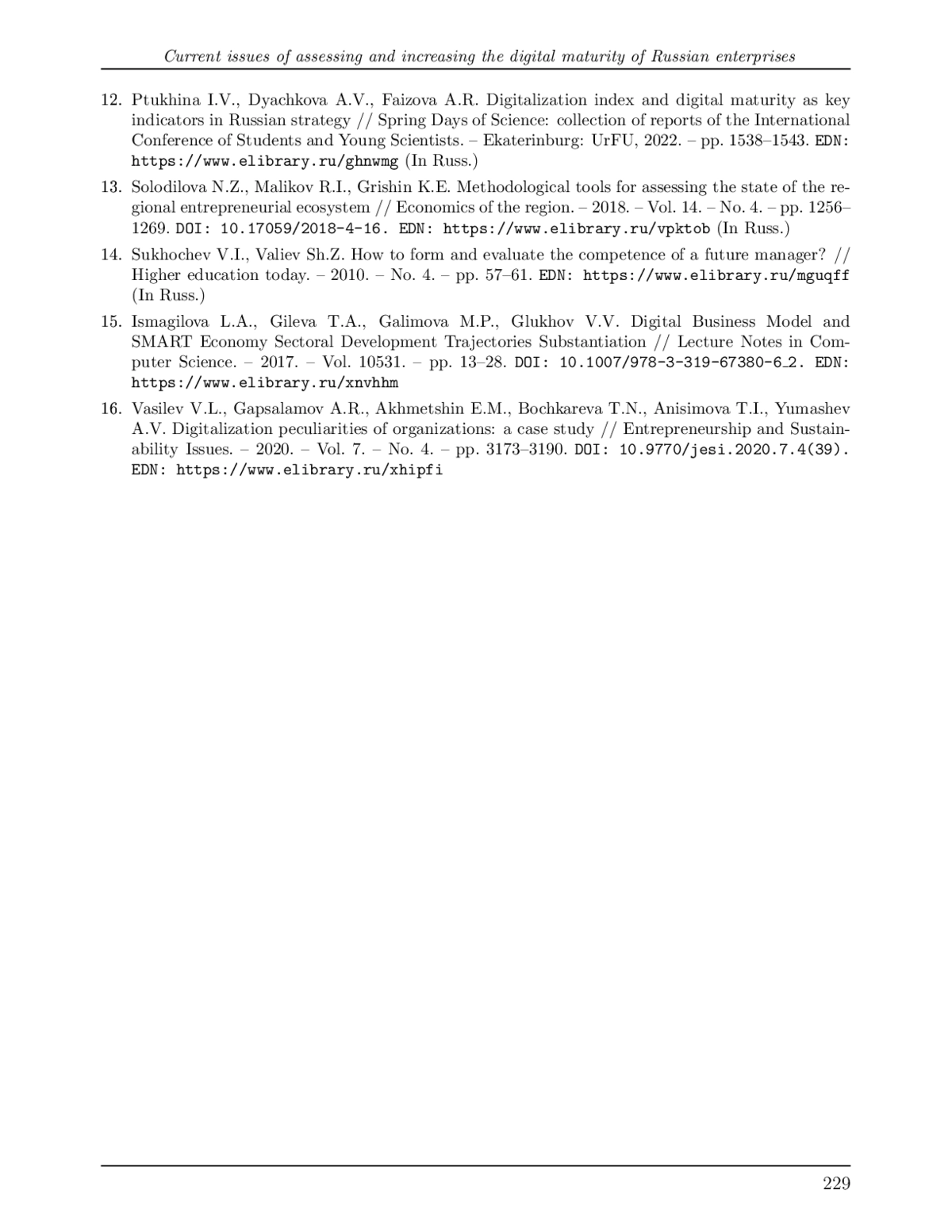 15. Ismagilova L.A., Gileva T.A., Galimova M.P., Glukhov V.V. Digital Business Model and SMART Economy Sectoral Development Trajectories Substantiation // Lecture Notes in Computer Science. - 2017. - Vol. 10531. - pp. 13-28. 10.1007/978-3-319-67380-6_2. DOI: 10.1007/978-3-319-67380-6_2.EDN EDN: XNVHHM