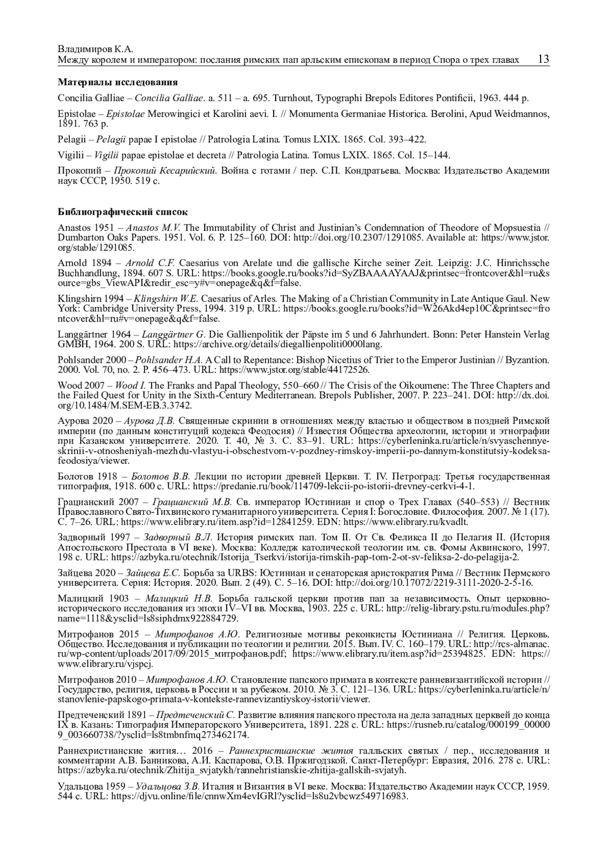 ВЛАДИМИРОВ К. А. МЕЖДУ КОРОЛЕМ И ИМПЕРАТОРОМ: ПОСЛАНИЯ РИМСКИХ ПАП АРЛЬСКИМ ЕПИСКОПАМ В ПЕРИОД СПОРА О ТРЕХ ГЛАВАХ // ВЕСТНИК САМАРСКОГО УНИВЕРСИТЕТА. ИСТОРИЯ, ПЕДАГОГИКА, ФИЛОЛОГИЯ. 2024. Т. 30 № 1