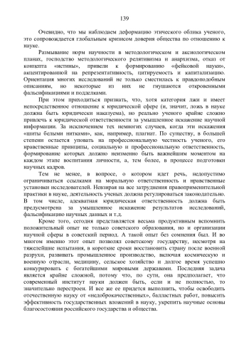 Наука в современном мире является важным фактором, определяющим функционирование и развитие всех элементов общественной системы. Без преувеличения можно сказать, что наука, как и создаваемые на основе научных достижений техника и технологии, представляют собой ключевые атрибуты существующей цивилизации. От успехов науки в наши дни зависит не только благополучие каждого конкретного человека (его физическое и психологическое состояние, материальный уровень жизни, возможности духовного совершенствования, творческой реализации), но также историческая судьба и перспективы человечества в целом. В связи с этим во всех развитых странах мира задачи научного и технологического развития находятся в ряду наиболее приоритетных государственных задач. В данном контексте особенно важным видится достоверность научных открытий, которая не в последнюю очередь зависит от этических установок научного сообщества и отдельных ученых.