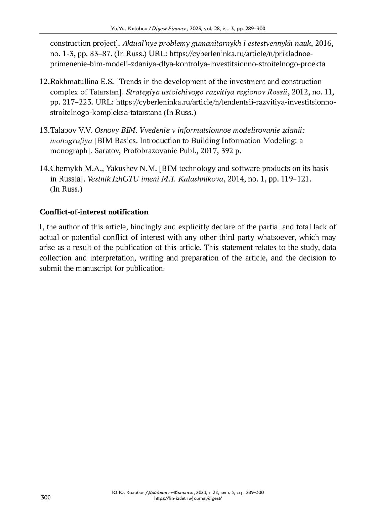 14. Черных М.А., Якушев Н.М. BIM-технология и программные продукты на его основе в России // Вестник ИжГТУ им. М.Т. Калашникова. 2014. № 1. С. 119-121. EDN: RZOERH