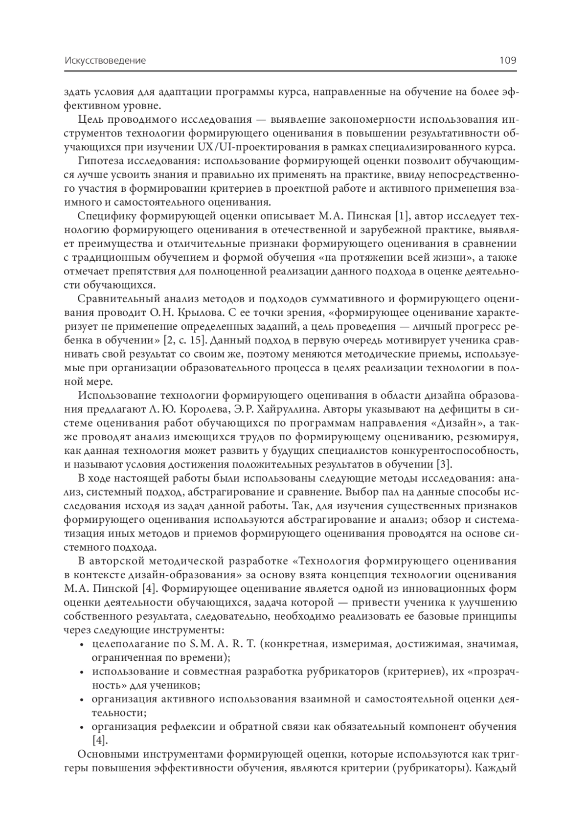 3. Королева Л. Ю., Хайруллина Э. Р. Формирующая оценка образовательных результатов студентов направления “Дизайн” // Вестник Казанского технологического университета. 2013. Т. 16. № 20. EDN: RFUUUH