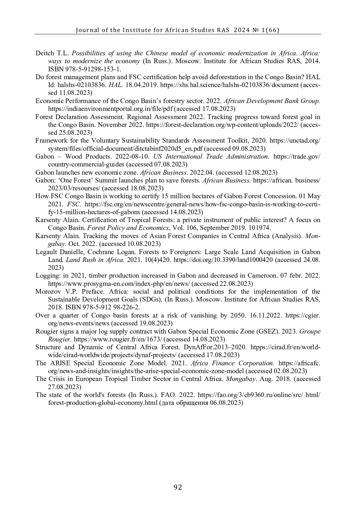 14. Legault Danielle, Cochrane Logan. Forests to Foreigners: Large Scale Land Acquisition in Gabon Land. Land Rush in Africa. 2021. 10(4)420. https://doi.org/10.3390/land1000420 (дата обращения 24.08.2023)