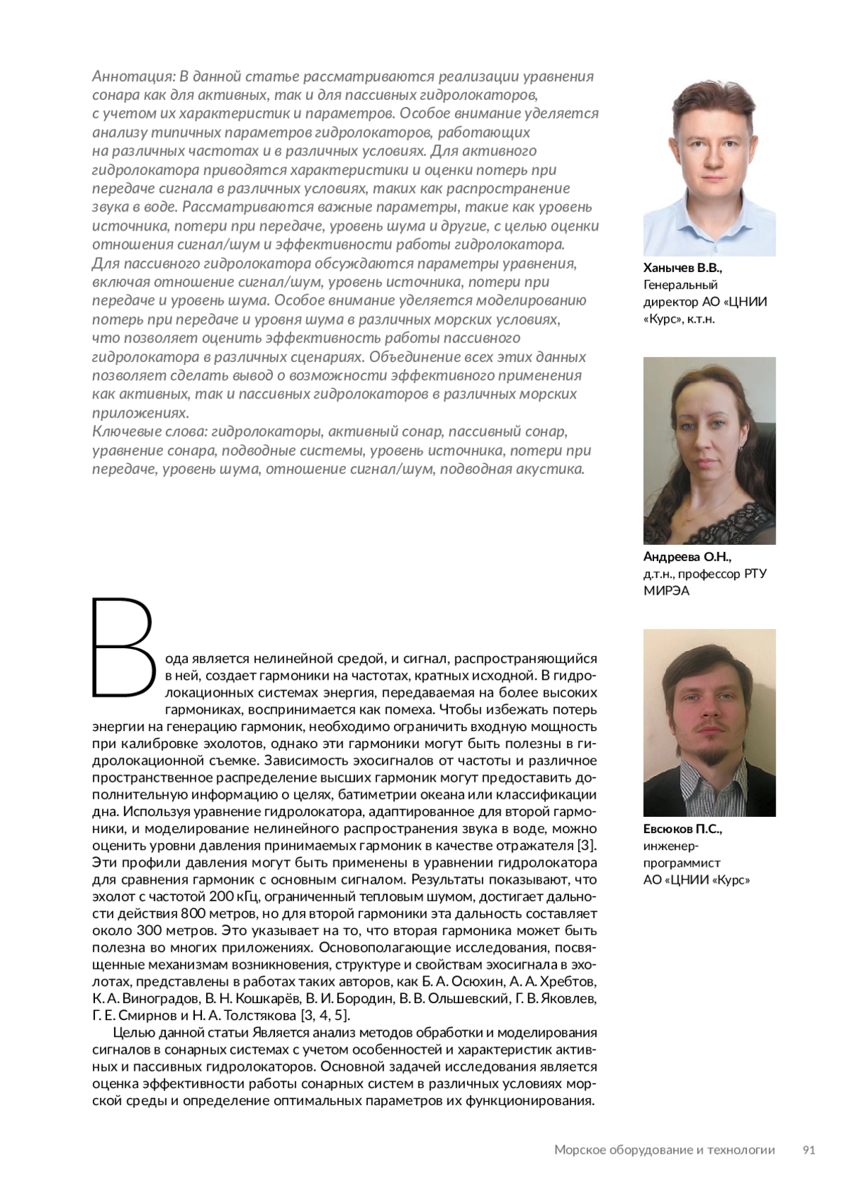 АНДРЕЕВА О. Н., ЕВСЮКОВ П. С. МЕТОДЫ ОБРАБОТКИ И МОДЕЛИРОВАНИЯ СИГНАЛОВ В СОНАРНЫХ СИСТЕМАХ // МОРСКОЕ ОБОРУДОВАНИЕ И ТЕХНОЛОГИИ. 2024. № 3 (40)