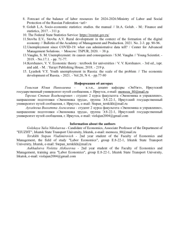 - Ляшок В.Ю. Молодежная безработица в России: масштабы проблемы // Экономическое развитие России. - 2021. - Т.28, N 4. - С.77-80
