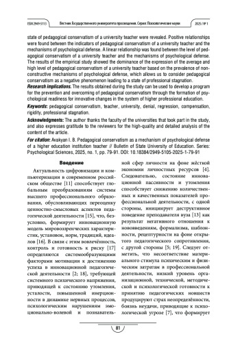 3. Авакян И. Б., Минияров В. М. Педагогический консерватизм преподавателя вуза в условиях профессионального стресса // Научный результат. Педагогика и психология образования. 2024. Т. 10. № 1. С. 63-82. https://doi.org/10.18413/2313-8971-2024-10-1-0-5.