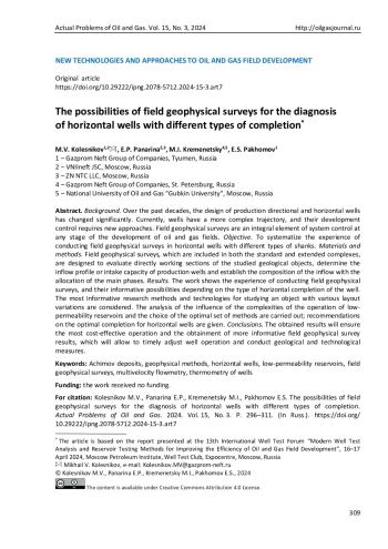 4. Мажар В.А., Ридель А.А., Колесников М.В. и др. Опыт гидродинамических исследований в скважинах со сложной конструкцией // Актуальные проблемы нефти и газа. 2022. Вып. 2(37). С. 127–138. https://doi.org/10.29222/ipng.2078-5712.2022-37.art9