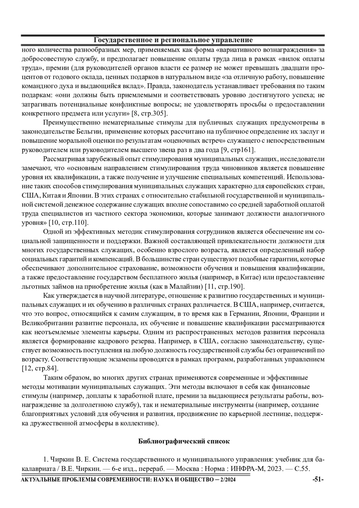 11. Перевозчикова Н. А., Гуева А. Б. Мотивация труда государственных служащих в зарубежных странах //Современное государственное и муниципальное управление: проблемы, технологии, перспективы. – 2022. – С. 190.