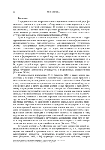 12. Китаева М. П. Аномия и отчуждение современного человека в изменяющемся мире // Горизонты цивилизации. 2024а. Т. 15, вып. 1. С. 42-56. EDN: WILHXM