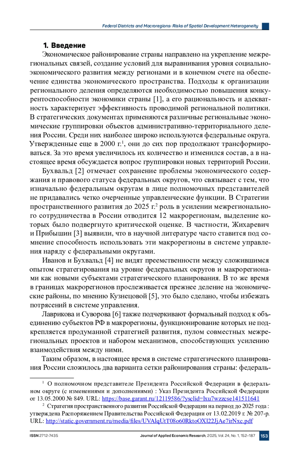 4. Иванов О.Б., Бухвальд Е.М. “Геостратегические территории” и “точки роста” в стратегировании пространственного развития Российской Федерации // ЭТАП: экономическая теория, анализ, практика. 2019. № 4. С. 7-23. DOI: 10.24411/2071-6435-2019-10098 EDN: MVVQYQ