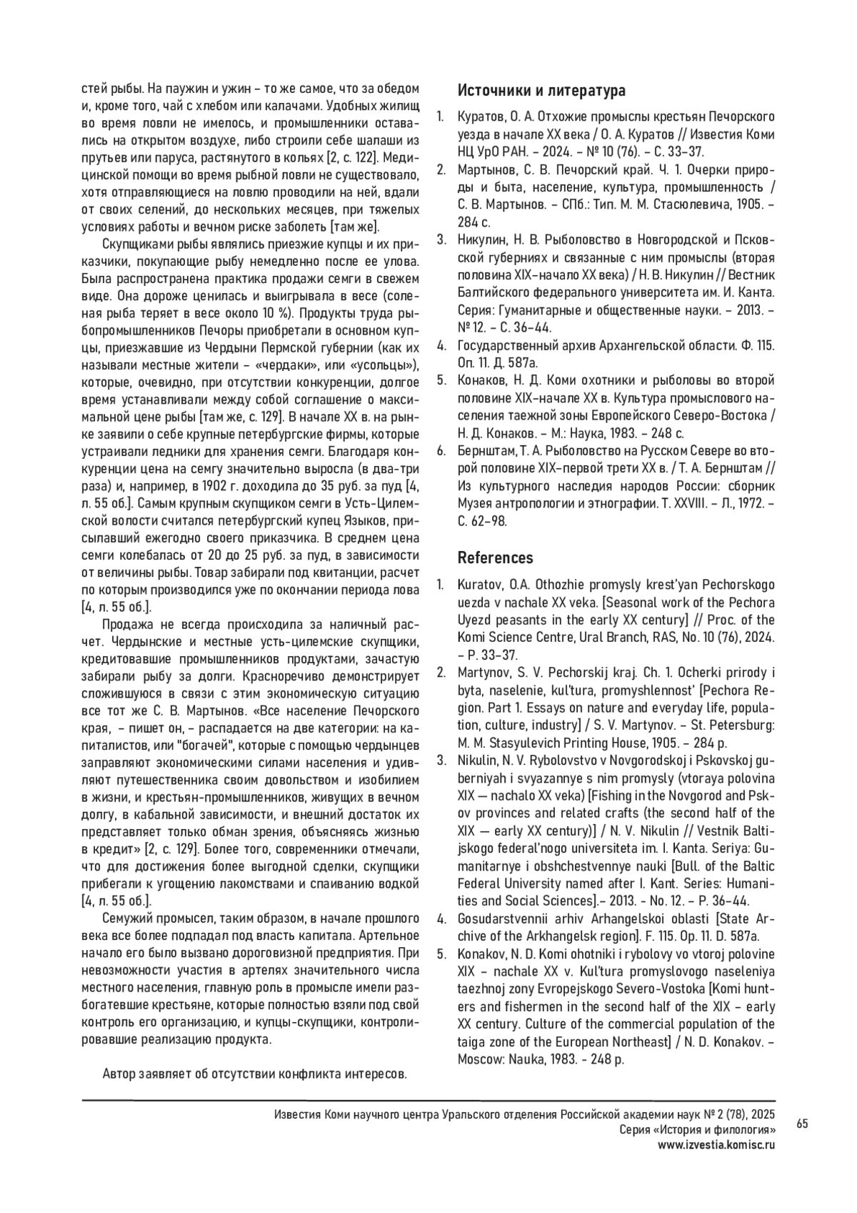 КУРАТОВ О. А. СЕМУЖИЙ ПРОМЫСЕЛ В ПЕЧОРСКОМ УЕЗДЕ В НАЧАЛЕ XX ВЕКА // ИЗВЕСТИЯ КОМИ НАУЧНОГО ЦЕНТРА УРО РАН. 2025. № 2 (78) (20 СТ.)
