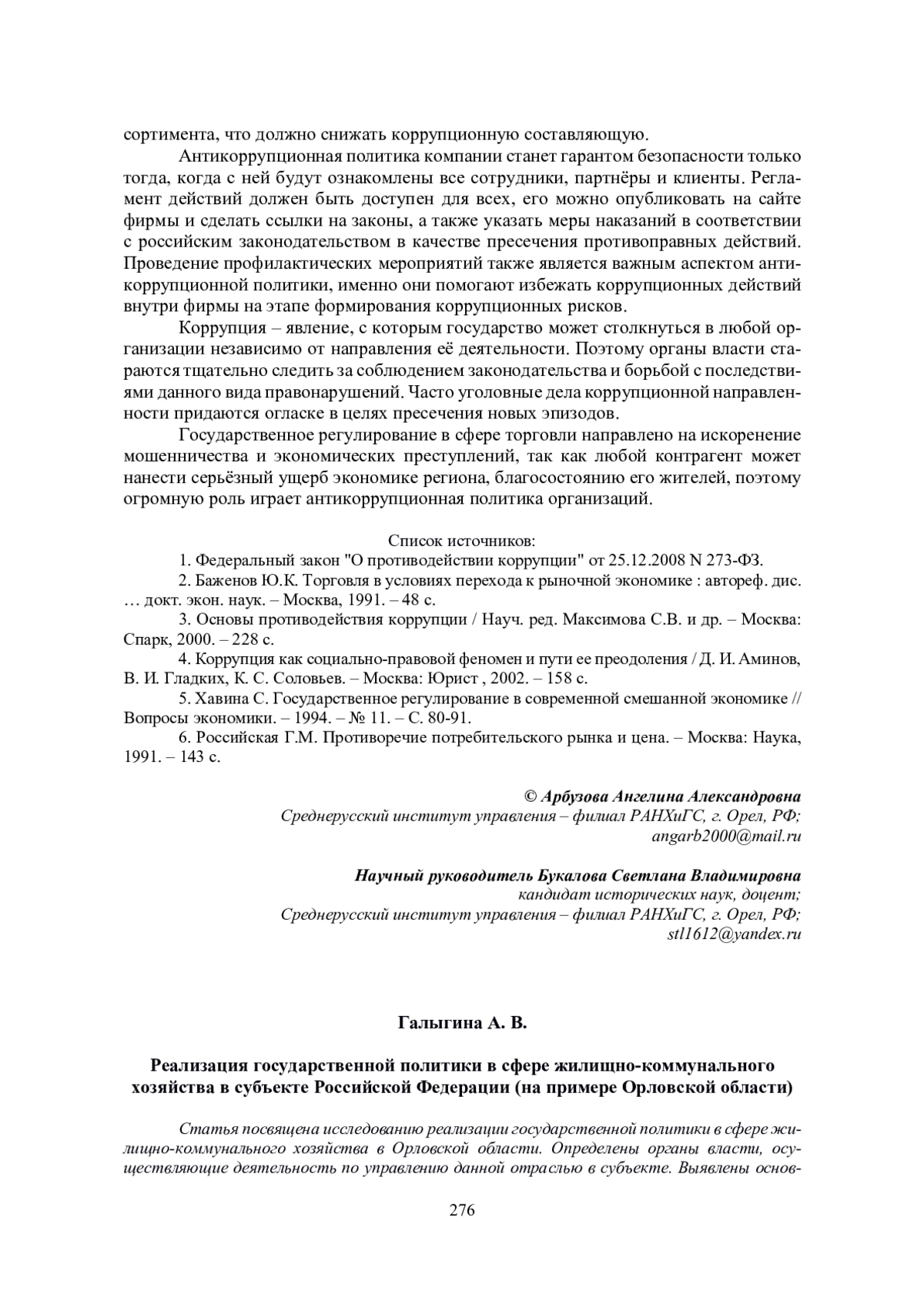1. Федеральный закон “О противодействии коррупции” от 25.12.2008 N 273-ФЗ.