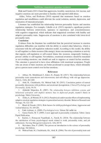 2. Abdi, R., Chalabianlu, Gh. Mehrad Sadr, M. (2015). Correlation pattern of normal personality dimensions with problems and emotional dysregulation. Clinical Psychology and Personality, 2(14), 59-70.