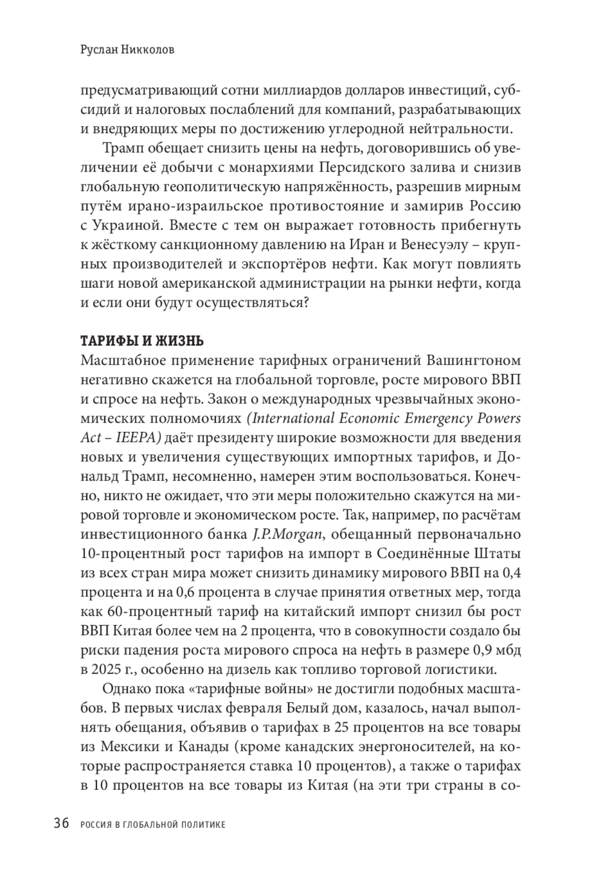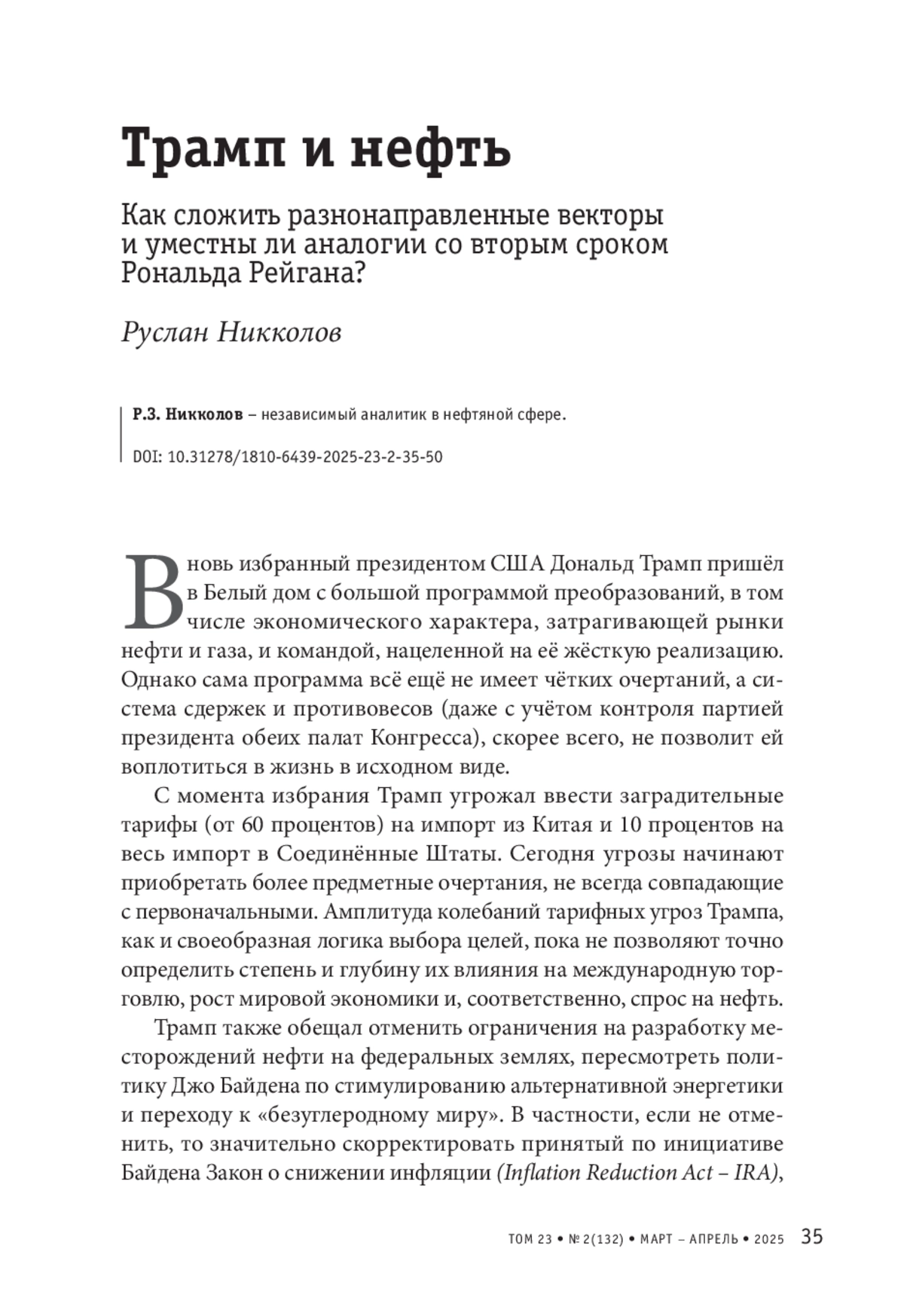 Вновь избранный президентом США Дональд Трамп пришёл в Белый дом с большой программой преобразований, в том числе экономического характера, затрагивающей рынки нефти и газа, и командой, нацеленной на её жёсткую реализацию. Однако сама программа всё ещё не имеет чётких очертаний, а система сдержек и противовесов (даже с учётом контроля партией президента обеих палат Конгресса), скорее всего, не позволит ей воплотиться в жизнь в исходном виде.