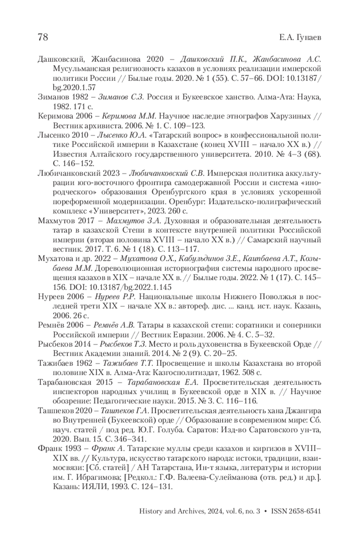 4. Дашковский, Жанбасинова 2020 - Дашковский П.К., Жанбасинова А.С. Мусульманская религиозность казахов в условиях реализации имперской политики России // Былые годы. 2020. № 1 (55). С. 57-66. https://doi.org/10.13187/bg.2020.1.57