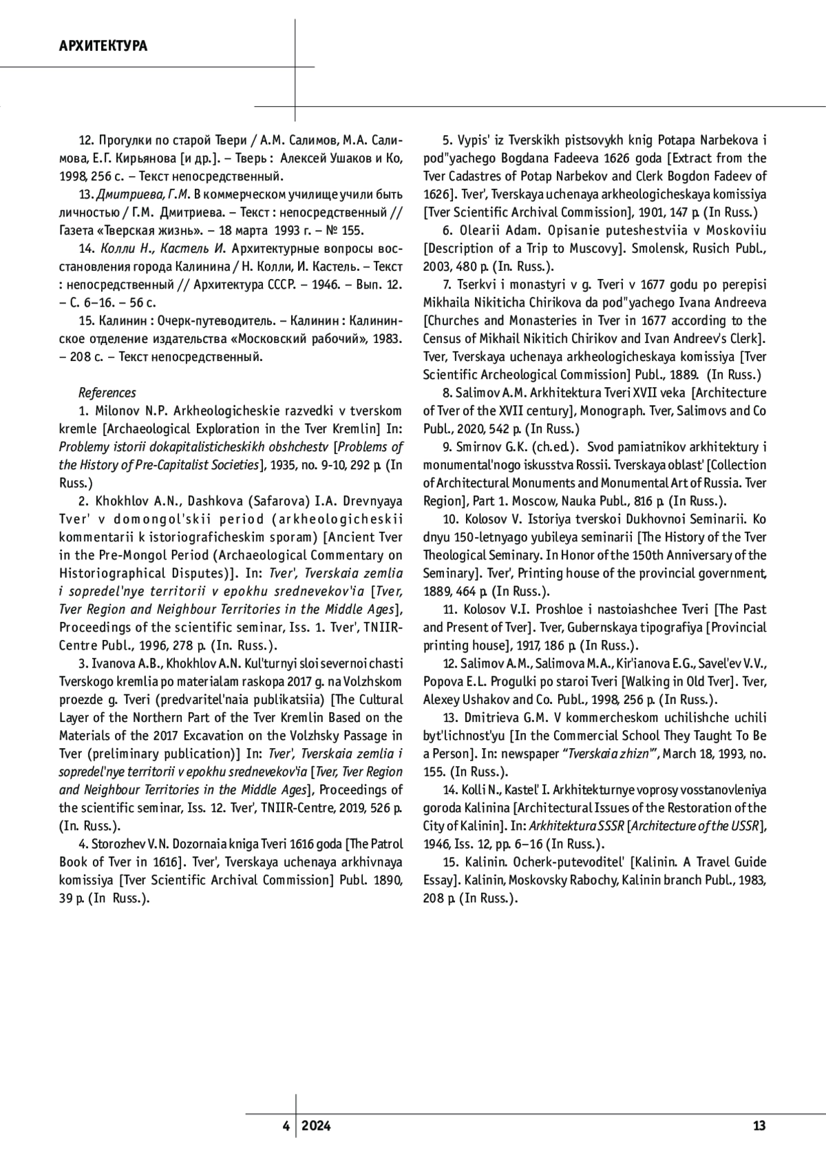 8. Салимов, А.М. Архитектура Твери XVII века : Монография / А.М. Салимов. – Тверь : Салимовы и К°, 2020. – 542 с. – Текст : непосредственный.
