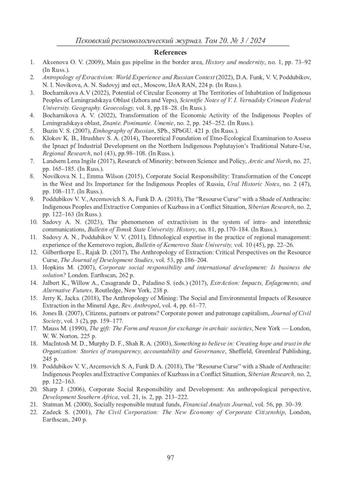 19. Poddubikov V. V., Arcemovich S. A, Funk D. A. The “Resourse Curse” with a Shade of Anthracite: Indigenous Peoples and Extractive Companies of Kuzbass in a Conflict Situation // Siberian Research. 2018. Vol. 2. P. 122-163. EDN: XRVKBV