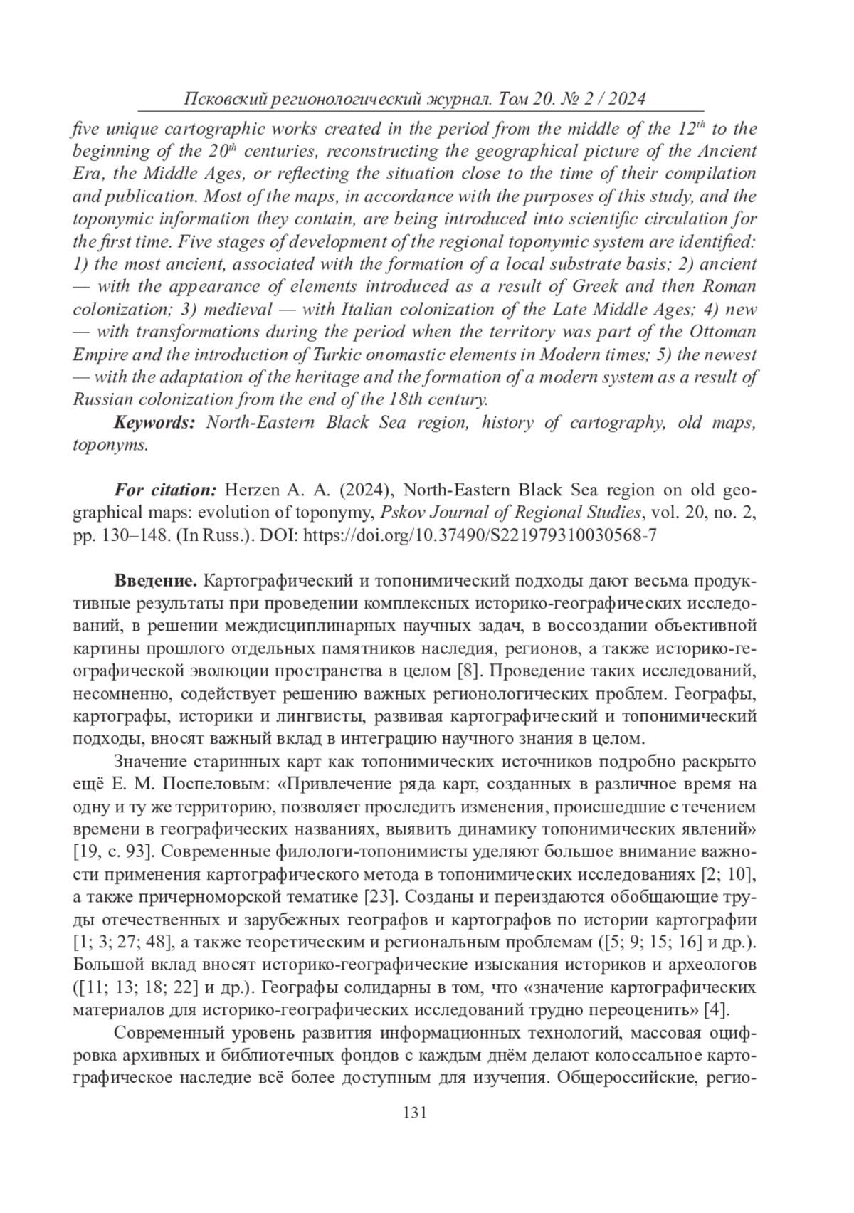 ГЕРЦЕН А. А. СЕВЕРО-ВОСТОЧНОЕ ПРИЧЕРНОМОРЬЕ НА СТАРИННЫХ ГЕОГРАФИЧЕСКИХ КАРТАХ: ЭВОЛЮЦИЯ ТОПОНИМИИ // ПСКОВСКИЙ РЕГИОНОЛОГИЧЕСКИЙ ЖУРНАЛ. 2024. Т. 20 № 2