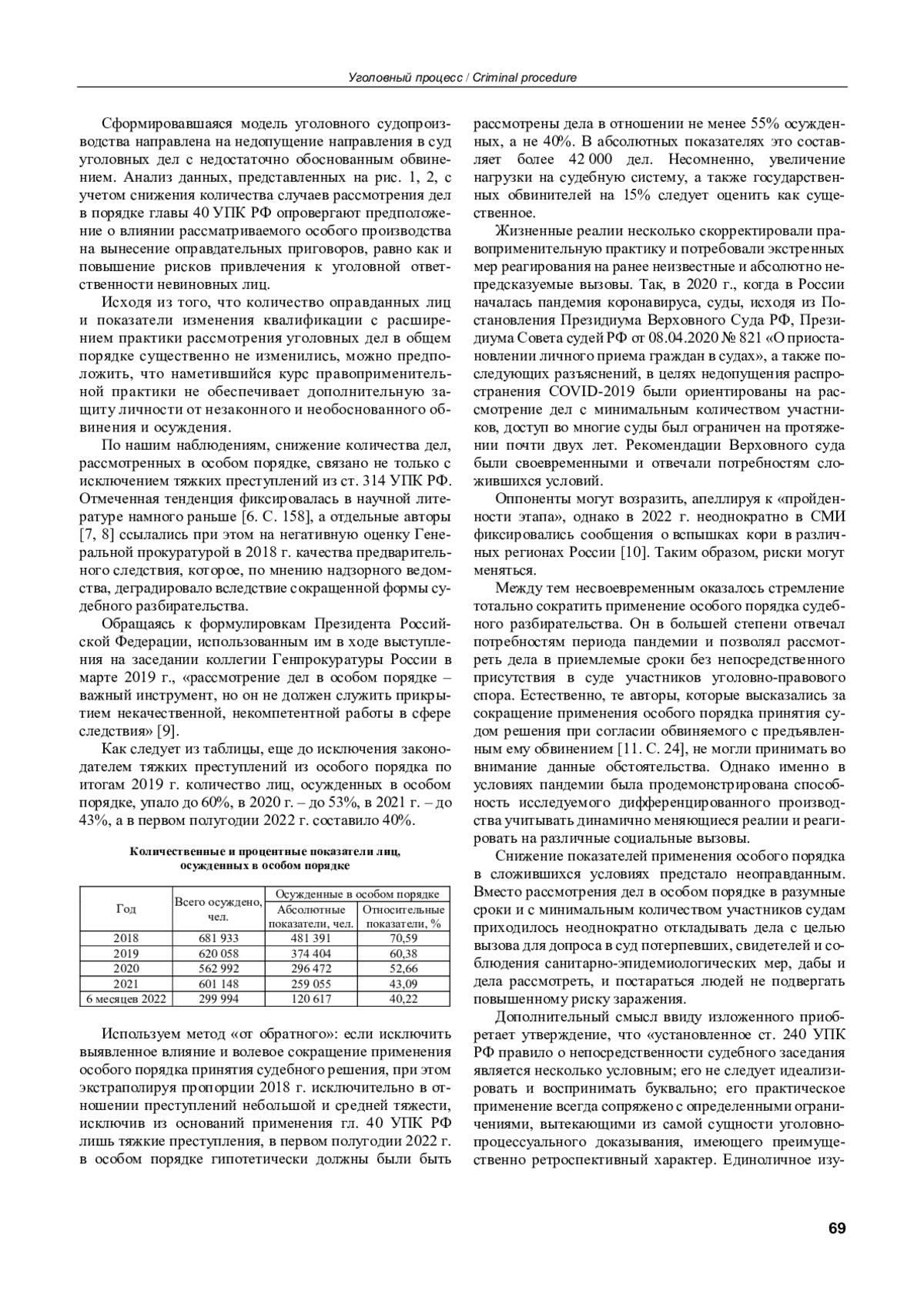 7. Овчинников Ю.Г. Реализация института особого порядка принятия судебного решения при согласии обвиняемого с предъяв ленным ему обвинением: pro et contra // Российский судья. 2022. № 5. EDN: CPOCWV