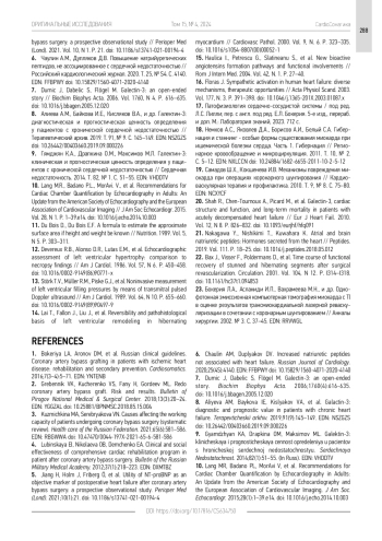 19. Самадов Ш.Х., Кокшенева И.В. Механизмы повреждения миокарда при операциях коронарного шунтирования // Кардио- васкулярная терапия и профилактика. 2010. Т. 9, № 8. С. 75–80. EDN: NCXYCF