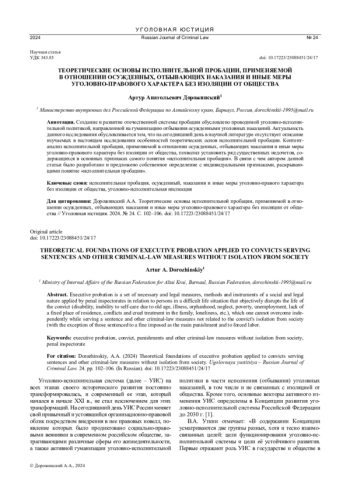 5. Скиба А.П. Направления развития уголовно-исполнительного права с учетом принятия Федерального закона “О пробации в Российской Федерации” // Цели наказания: уголовные, уголовно-исполнительные, криминологические и иные аспектах (отечественный и зарубежный опыт): сб. материалов междунар. науч.-практ. конф., Благовещенск, 16-17 марта 2023 года. Благовещенск: Амурский государственный университет, 2023. С. 200-206. EDN: BRYCPY