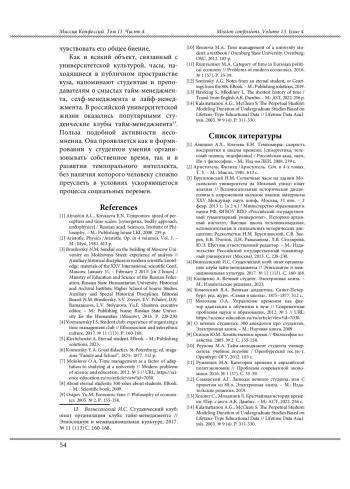 Ключевые фразы: университетская культура, типы темпорального восприятия, социальное время, управление временем, тайм-менеджмент, темпоральный интеллект