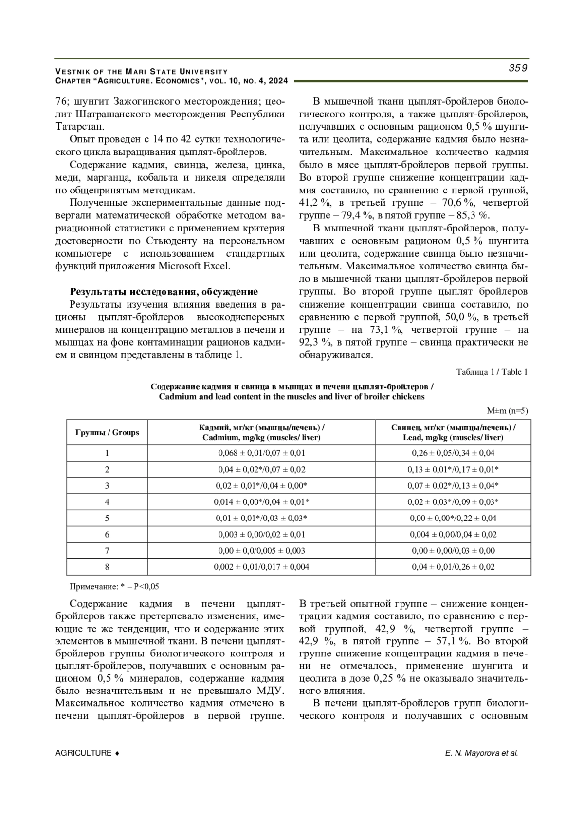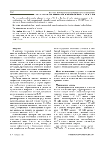 10. Влияние биологически активных веществ и сорбента на ветеринарно-санитарное качество мяса при контаминации кормов кадмием / Потапова С. Н., Кадиков И. Р. [и др.] // Вестник Марийского государственного университета. Серия “Сельскохозяйственные науки. Экономические науки”. 2023. Т. 9. № 2. С. 178-183. DOI: 10.30914/2411-9687-2023-9-2-178-183 EDN: CCHJRQ