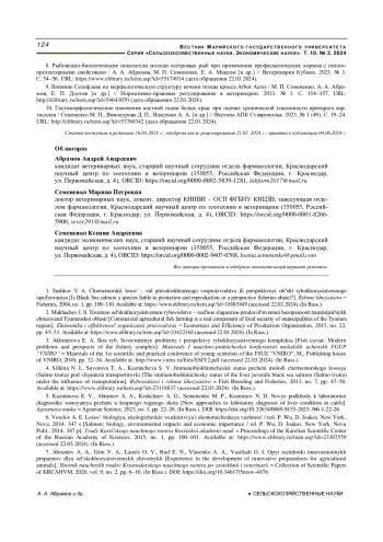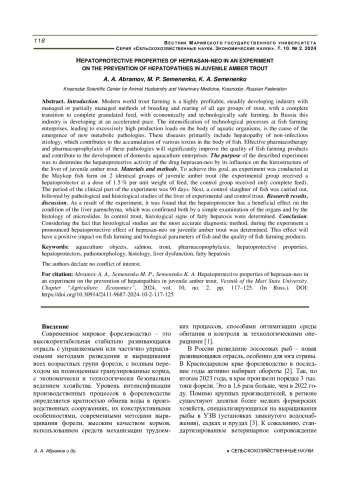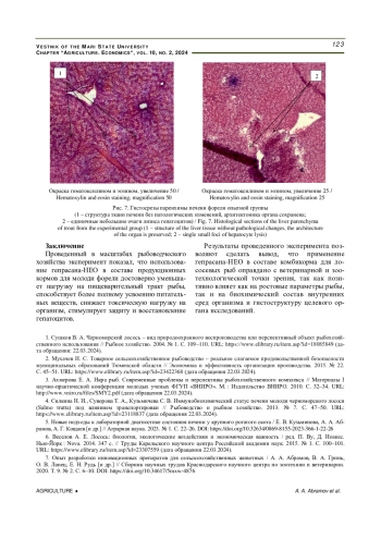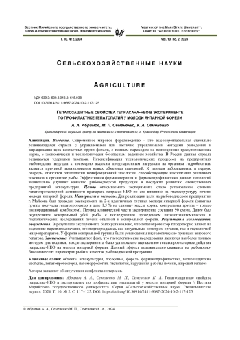 Статья: ГЕПАТОЗАЩИТНЫЕ СВОЙСТВА ГЕПРАСАНА-НЕО В ЭКСПЕРИМЕНТЕ ПО ПРОФИЛАКТИКЕ ГЕПАТОПАТИЙ У МОЛОДИ ЯНТАРНОЙ ФОРЕЛИ (2024)