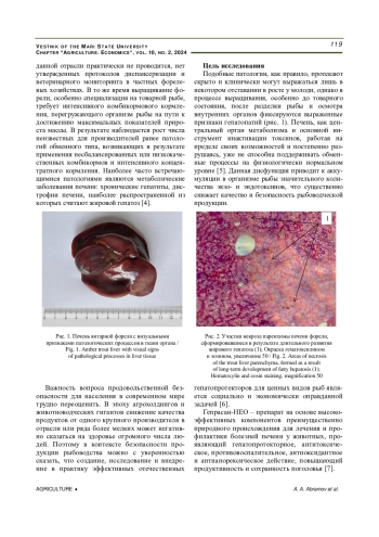 Ключевые фразы: объекты аквакультуры, лососевые, форель, фармакопрофилактика, гепатозащитные свойства, Гепатопротекторы, патоморфология, гистология, нарушения работы печени, жировой гепатоз