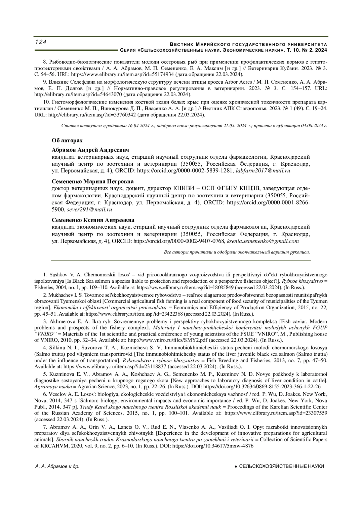 Журнал: ВЕСТНИК МАРИЙСКОГО ГОСУДАРСТВЕННОГО УНИВЕРСИТЕТА. СЕРИЯ: СЕЛЬСКОХОЗЯЙСТВЕННЫЕ НАУКИ. ЭКОНОМИЧЕСКИЕ НАУКИ