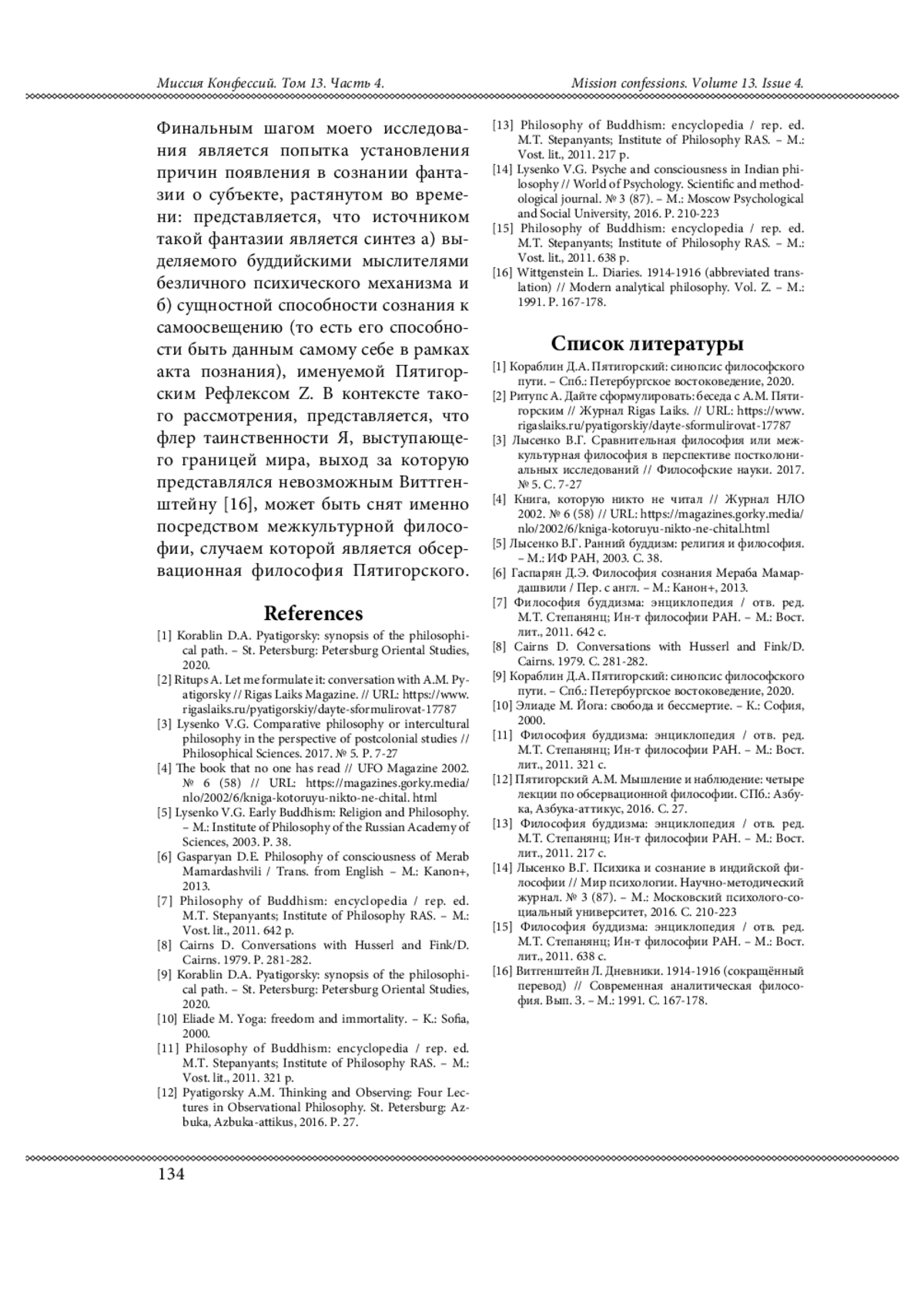 1. 	Кораблин Д.А. Пятигорский: синопсис философского пути. - Спб.: Петербургское востоковедение, 2020.