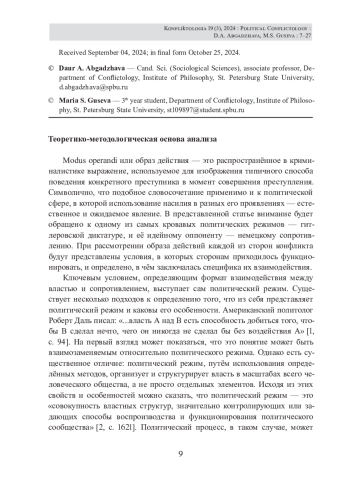 Myakinchenko D. A. “Political violence as a mechanism of functioning of political power. State and municipal management”, Scientific notes of SCAGS, 2012, no. 2. (In Russ.).