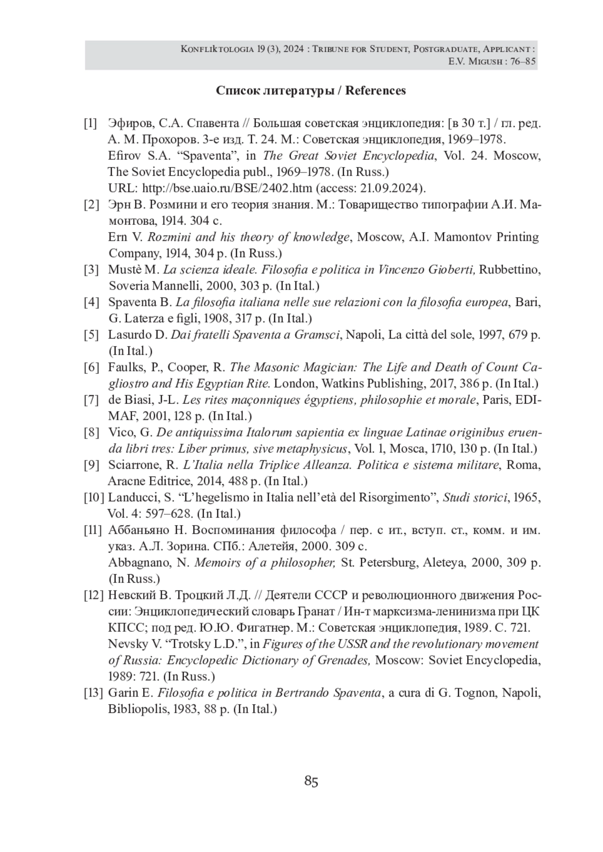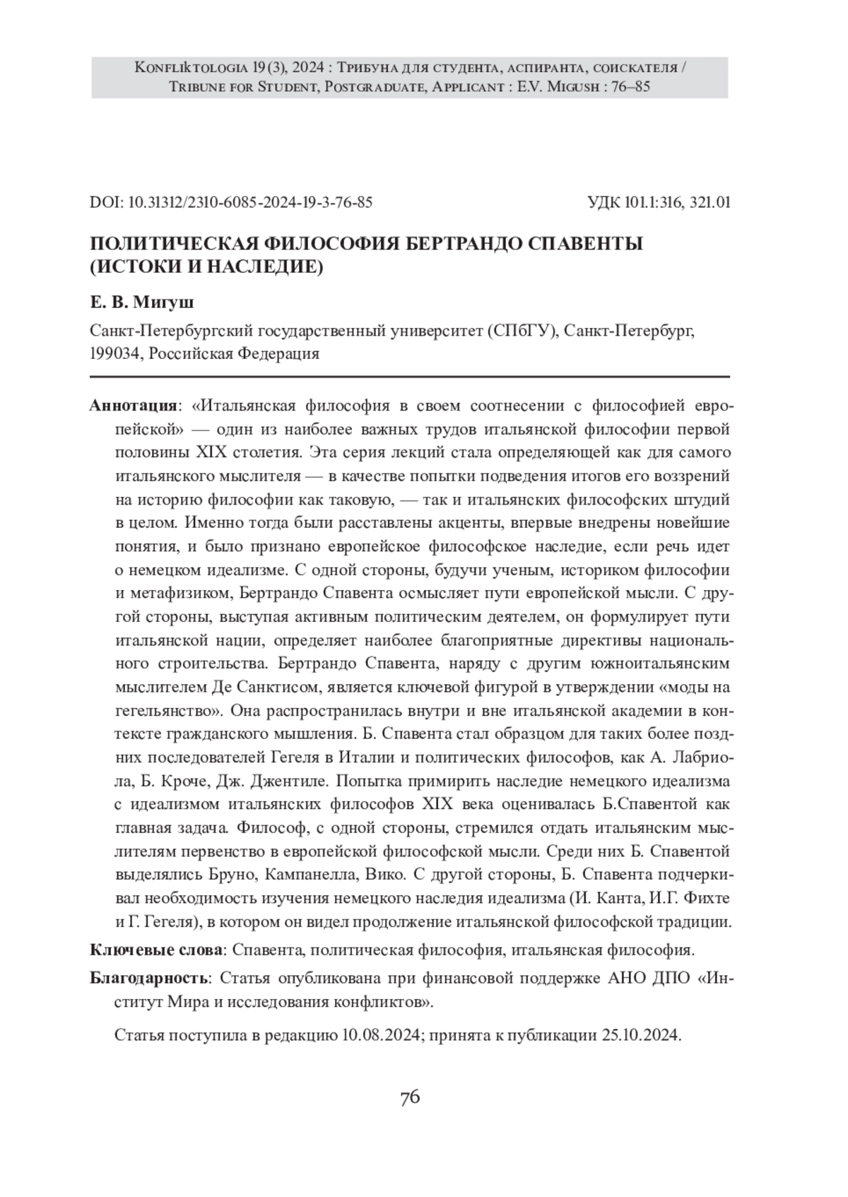 МИГУШ Е. В. ПОЛИТИЧЕСКАЯ ФИЛОСОФИЯ БЕРТРАНДО СПАВЕНТЫ (ИСТОКИ И НАСЛЕДИЕ) // КОНФЛИКТОЛОГИЯ. 2024. Т. 19 № 3