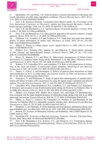 9. Zuev L. B., Barannikova S. A. Quasi-particle approach to the autowave physics of metal plasticity // Metals. – 2020. – Vol. 10 (11). – P. 1–15. – DOI: 10.3390/met10111446.