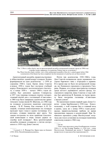 У каждого строения на центральной площади города своя уникальная история, хранящая свидетельства ушедшей советской эпохи, но Дом Советов среди них занимает особое место. Это одно из первых крупных капитальных зданий, построенных при советской власти в ЙошкарОле. До 1971 года в нем размещались советские и партийные органы власти: с 1938 года ‒ Верховный совет Марийской АССР2 и обком КПСС3, с 1946 года ‒ Совет Министров МАССР4 и другие правительственные учреждения.