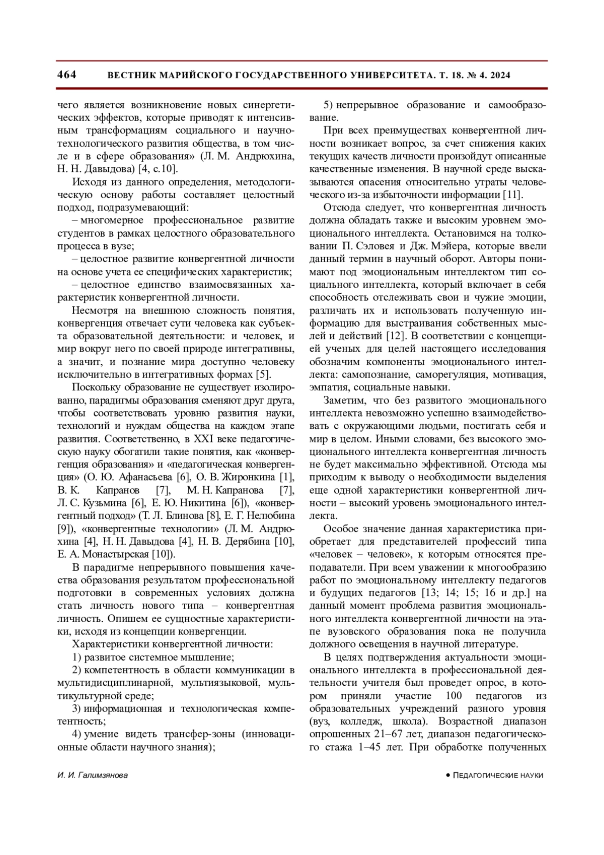 9. Нелюбина Е. Г. Конвергентный подход в системе высшего образования на примере естественных и гуманитарных наук // Парадигма. 2021. № 3. С. 45-48. URL: item.asp?id=45694664 (дата обращения: 12.06.2024). EDN: RVHQSM