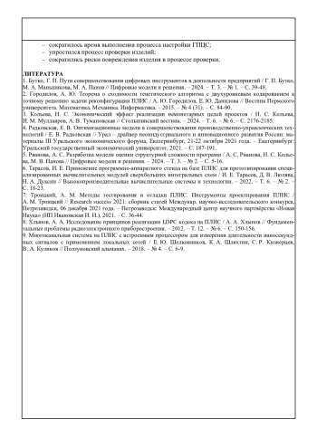 8. Хлынов, А. А. Исследование принципов реализации LDPC кодека на ПЛИС / А. А. Хлынов // Фундаментальные проблемы радиоэлектронного приборостроения. - 2012. - Т. 12. - № 6. - С. 150-156. EDN: TQBQWZ
