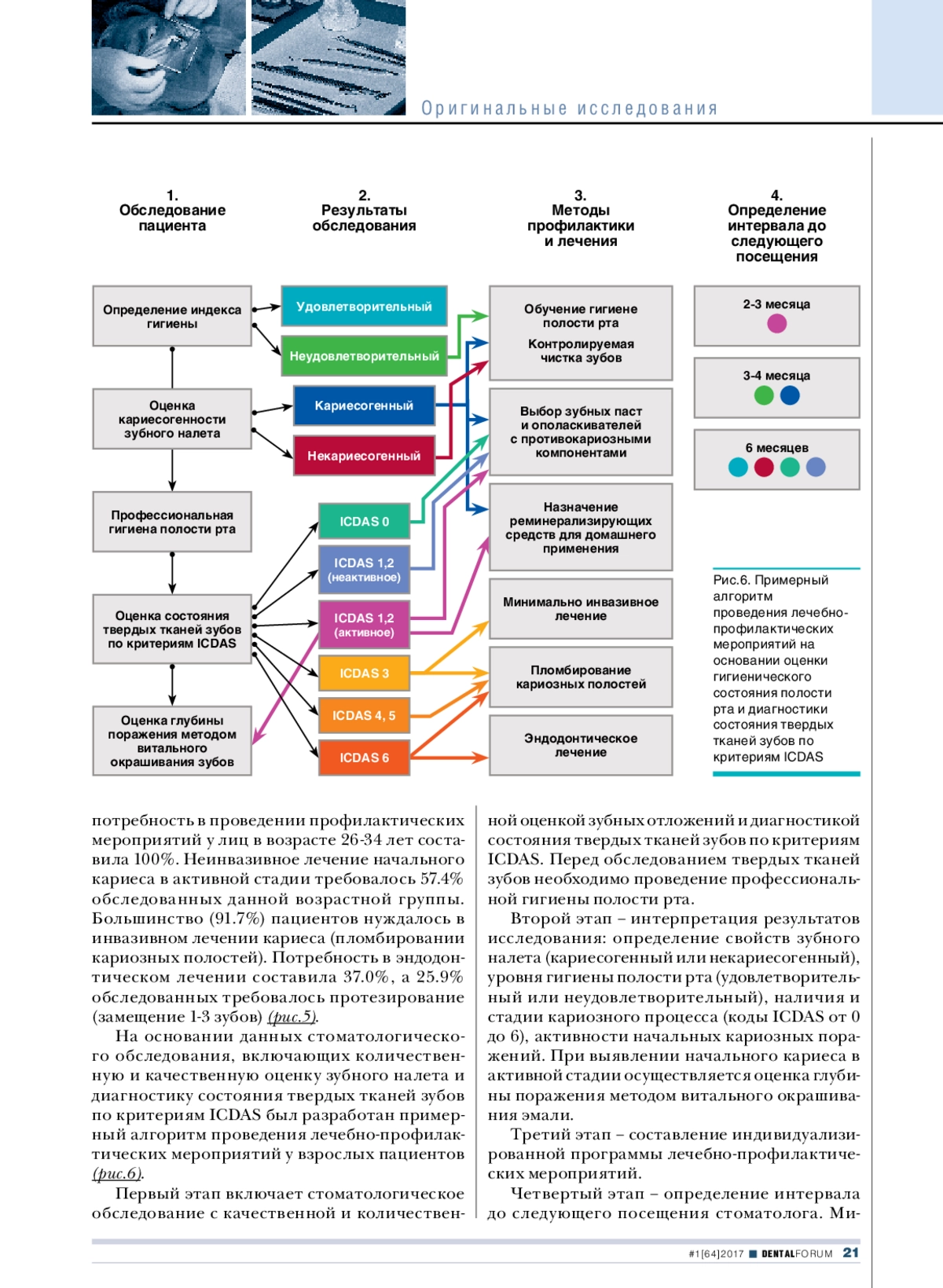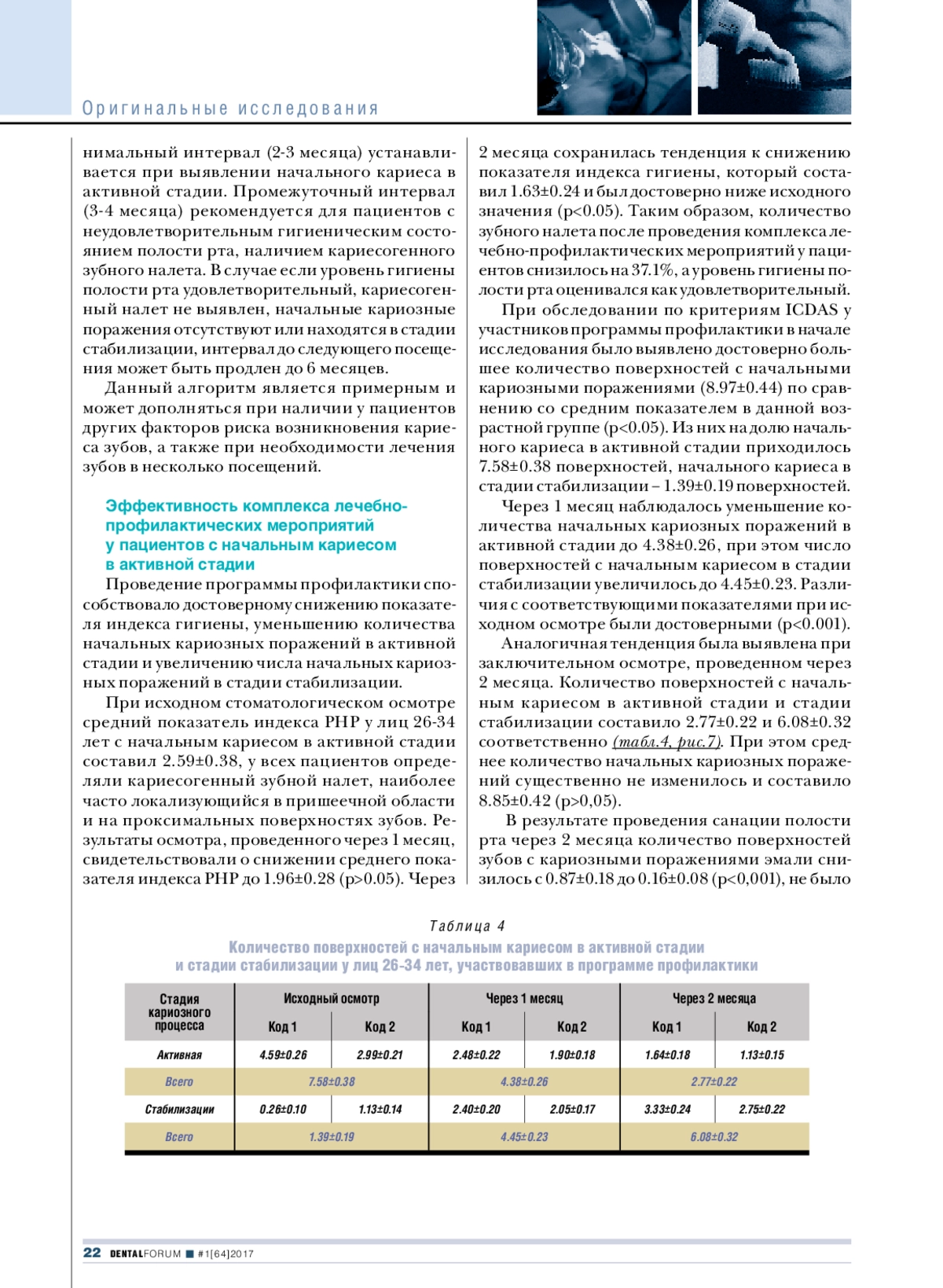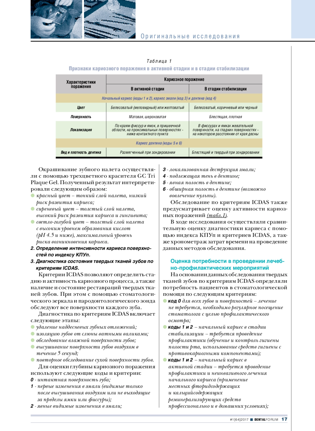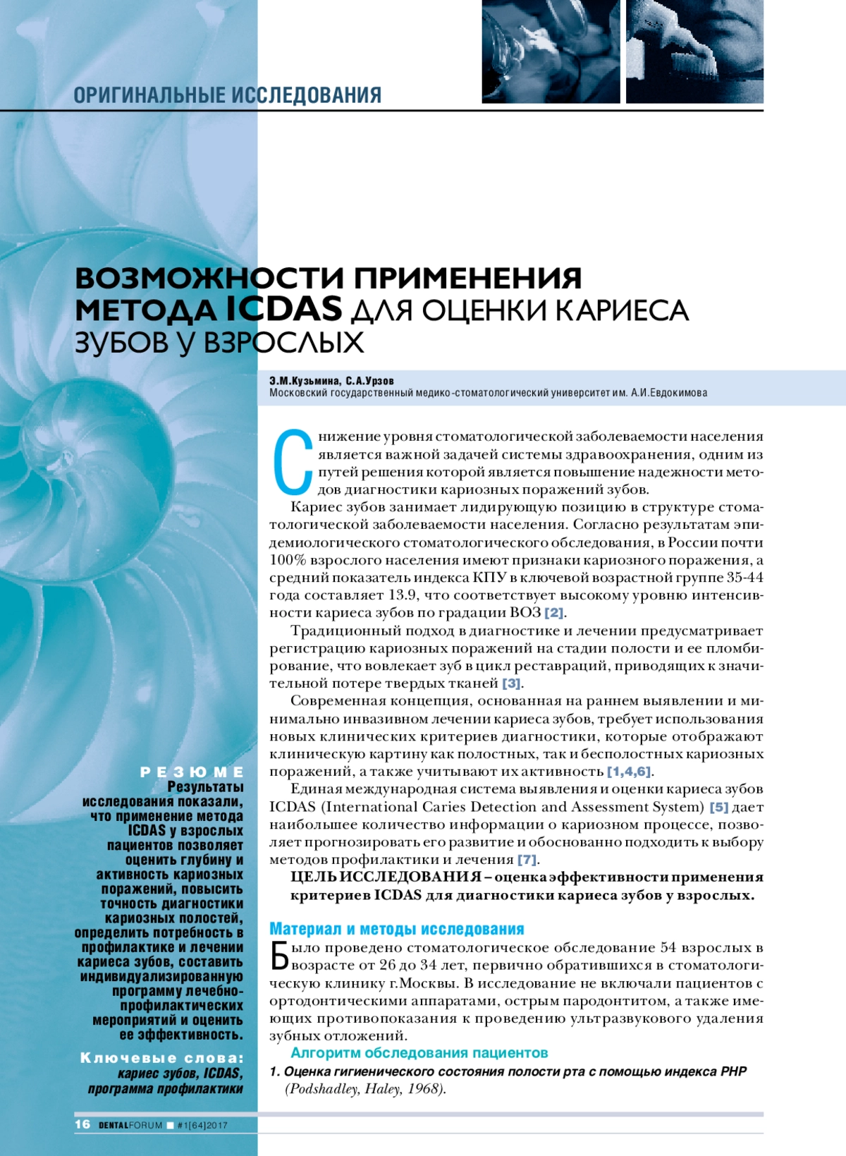 Результаты исследования показали, что применение метода ICDAS у взрослых пациентов позволяет оценить глубину и активность кариозных поражений, повысить точность диагностики кариозных полостей, определить потребность в профилактике и лечении кариеса зубов, составить индивидуализированную программу лечебнопрофилактических мероприятий и оценить ее эффективность.