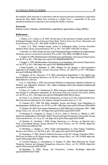 1. Харин, А. Г., Усанов, А. Н. 2015, О проблеме обеспечения энергетической безопасности Калининградской области, Вестник Балтийского федерального университета им. И. Канта, Серия: Гуманитарные и общественные науки, № 3, с. 91-100. EDN: ULSHUX