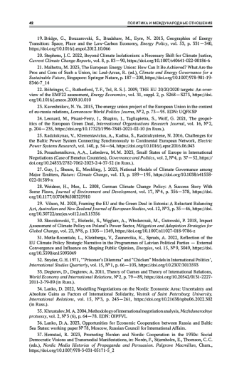 23. Кавешников, Н. Ю. 2015, Проект энергетического союза ЕС в контексте отношений между Россией и Европейским союзом, Вестник Московского университета, Серия 25: Международные отношения и мировая политики, № 2, с. 73-95. EDN: UQFKSP