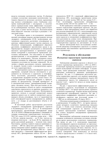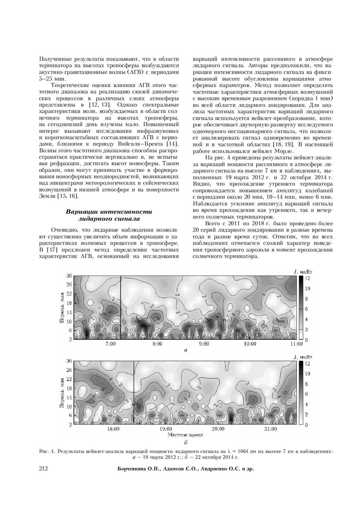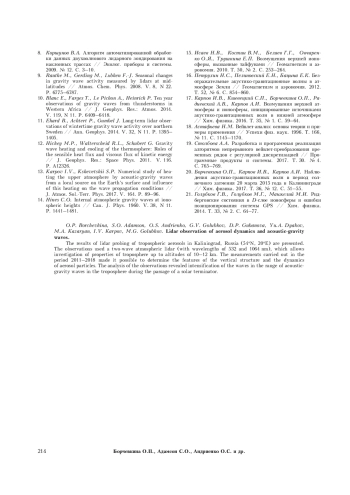 11. Ehard B., Achtert P., Gumbel J. Long-term lidar observations of wintertime gravity wave activity over northern Sweden // Ann. Geophys. 2014. V. 32, N 11. P. 1395-1405.