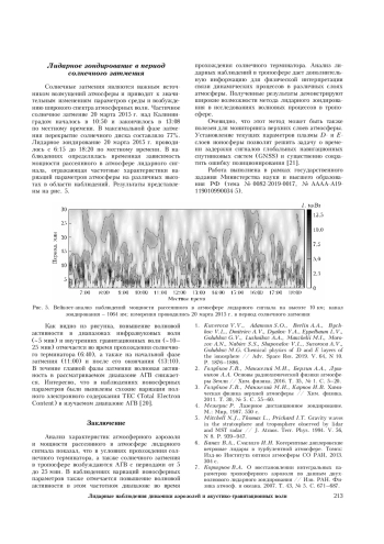 5. Mitchell N.J., Thomas L., Prichard I.T. Gravity waves in the stratosphere and troposphere observed by lidar and MST radar // J. Atmos. Terr. Phys. 1994. V. 56, N 8. P. 939-947.