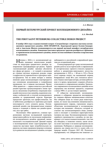 В ноябре 2024 года в художественной галерее «СегодняЗавтра» открылась выставка коллекционного предметного дизайна «МНЕ НРАВИТСЯ». Кураторский проект Ксении Бандориной и Анастасии Шевчук позиционируется как первый научный манифест петербургского коллекционного дизайна. Концепция выставки предлагает зрителю разобраться в феномене и терминологии коллекционного дизайна, понять истоки новейшего явления и перспективы его развития.