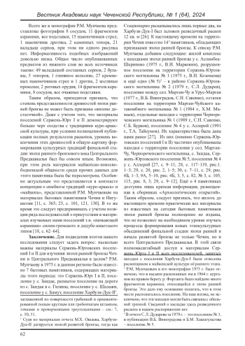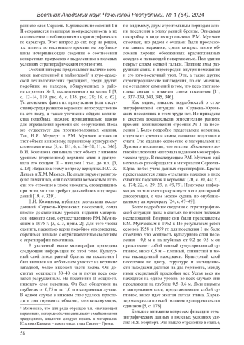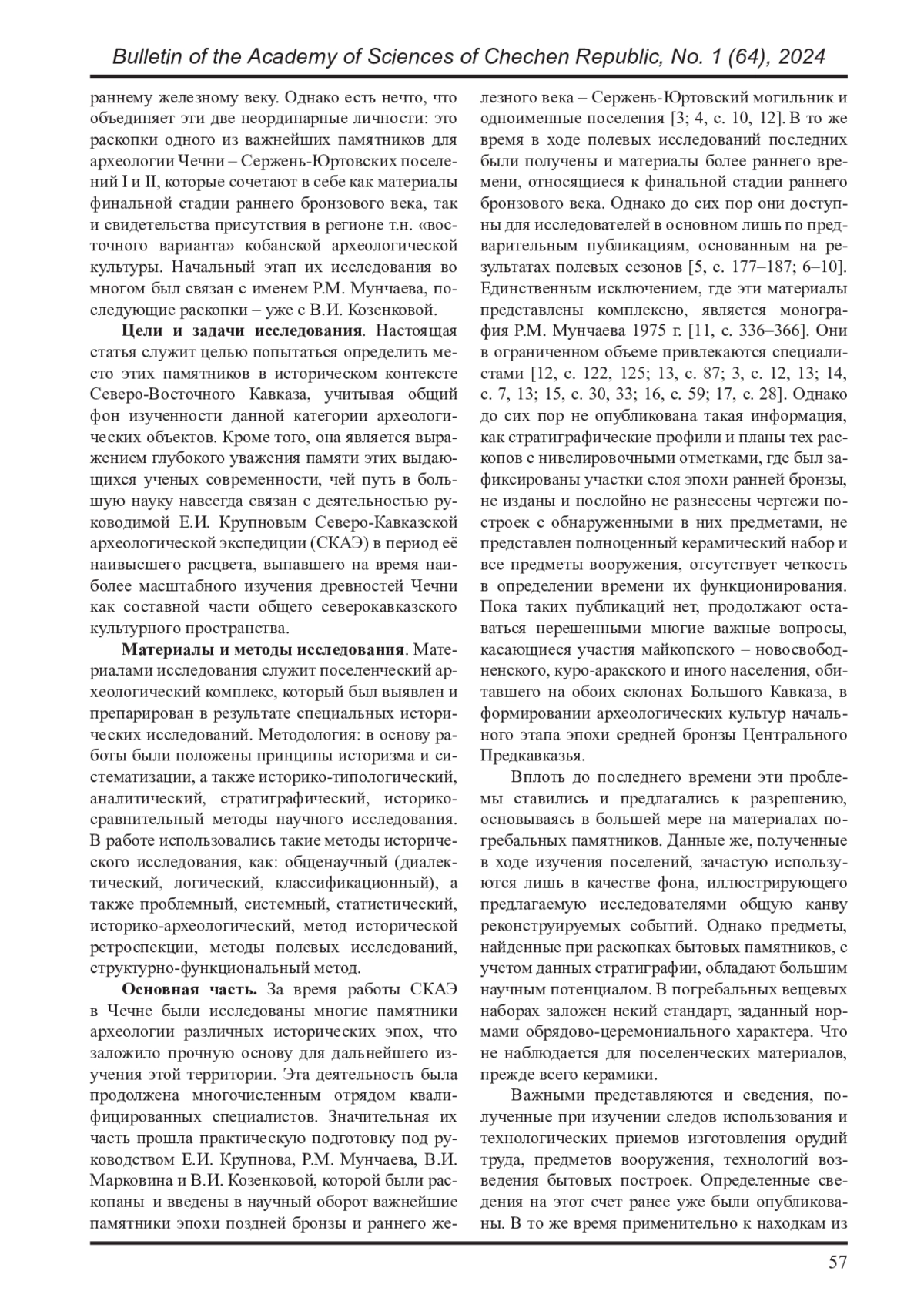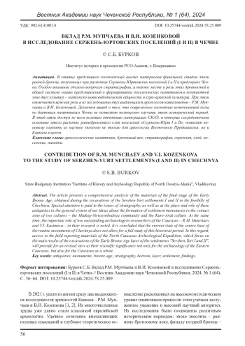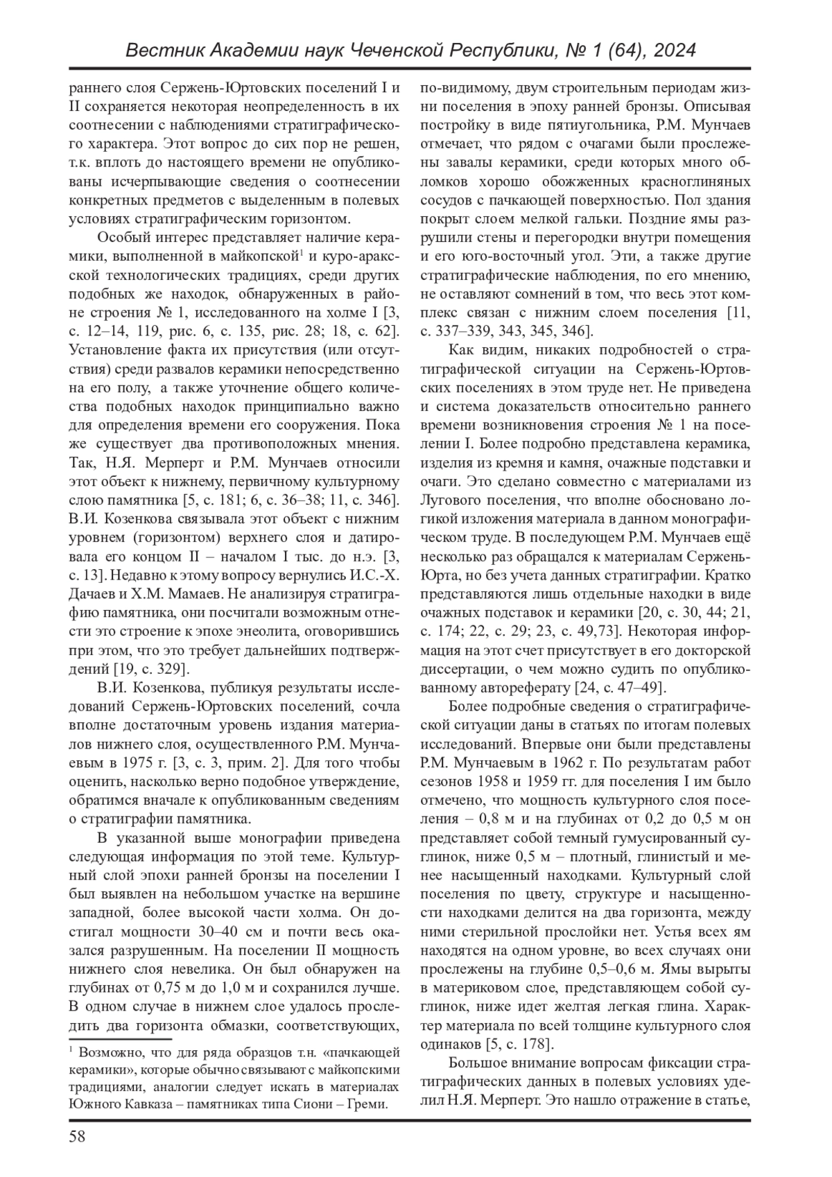 Статья: ВКЛАД Р. М. МУНЧАЕВА И В. И. КОЗЕНКОВОЙ В ИССЛЕДОВАНИЕ СЕРЖЕНЬ-ЮРТОВСКИХ ПОСЕЛЕНИЙ (I И II) В ЧЕЧНЕ (2024)