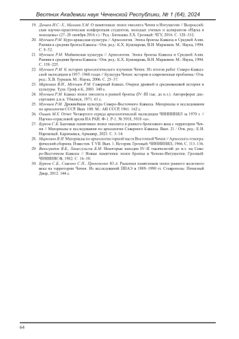 БУРКОВ С. Б. ВКЛАД Р. М. МУНЧАЕВА И В. И. КОЗЕНКОВОЙ В ИССЛЕДОВАНИЕ СЕРЖЕНЬ-ЮРТОВСКИХ ПОСЕЛЕНИЙ (I И II) В ЧЕЧНЕ // ВЕСТНИК АКАДЕМИИ НАУК ЧЕЧЕНСКОЙ РЕСПУБЛИКИ. 2024. № 1 (64)