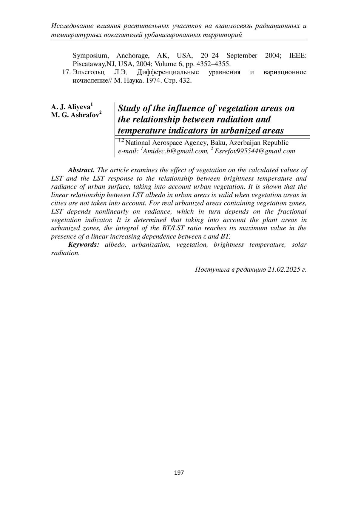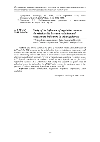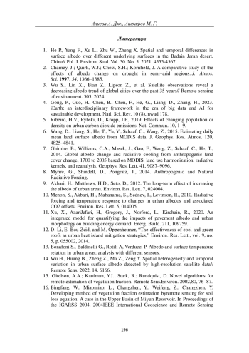 3. Wu S., Lin X., Bian Z., Lipson Z., et al. Satellite observations reveal a decreasing albedo trend of global cities over the past 35 years// Remote sensing of environment. 303. 2024.
