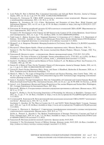 23. Стерлин А., Протасов А., Крейдин С. Современные трансформации концепций и силовых инструментов стратегического сдерживания. Военная мысль, 2019, № 8, cс. 7-12. EDN: QGVUDW