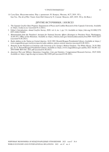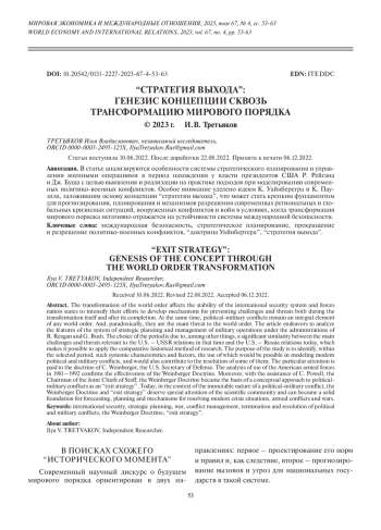 ТРЕТЬЯКОВ И. В. “СТРАТЕГИЯ ВЫХОДА”: ГЕНЕЗИС КОНЦЕПЦИИ СКВОЗЬ ТРАНСФОРМАЦИЮ МИРОВОГО ПОРЯДКА // МИРОВАЯ ЭКОНОМИКА И МЕЖДУНАРОДНЫЕ ОТНОШЕНИЯ. 2023. Т. 67 № 4