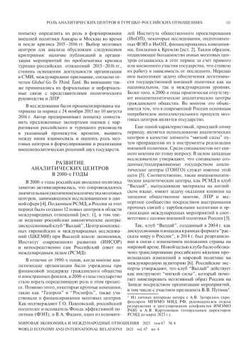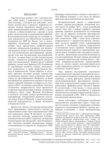 6. Barbashin A., Graef A. Thinking Foreign Policy in Russia: Think Tanks and Grand Narratives. Atlantic Council, 12.11.2019. Available at: https://www.atlanticcouncil.org/in-depth-research-reports/report/thinking-foreign-policy-in-russia-think-tanks-and-grand-narratives/ (accessed 25.01.2023).