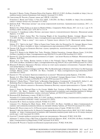 Svistunova I. Russia and Turkey: Cold War 2.0? RISS, 07.12.2015. (In Russ.) Available at: https://riss.ru/analitica/rossiya-i-turtsiya-kholodnaya-voyna-20/ (accessed 15.11.2022).