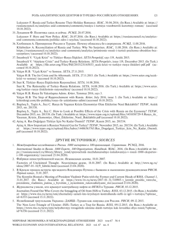 İmanbeyli V. “Airplane Crisis” and Turkey-Russia Relations. SETA Perspektiv, issue 119, December 2015. (In Turk.) Available at: https://file.setav.org/Files/Pdf/20151231165033_ucak-krizi-ve-turkiye-rusya-iliskileri-pdf.pdf (accessed 10.10.2022).